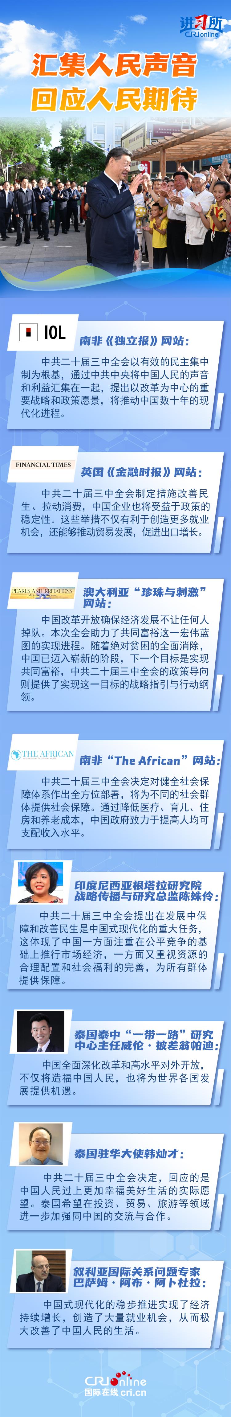 人民立场是中国共产党的根本立场,它向世界展现了中国以人民为中心推进改革的坚定决心和力量。国际社会认为,中国这场全面深化改革,不仅将造福中国人民,也将为世界各国发展提供机遇。