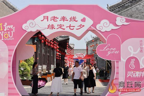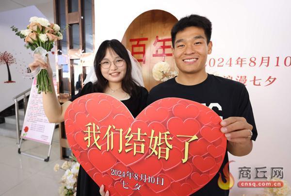 8月10日是七夕节,许多新人选择在这一天登记结婚。当日上午,记者在睢阳区婚姻登记处看到,不少情侣领过结婚证后,纷纷在合影墙前拍照留念。七夕恰逢周末,商丘古城东门外的月老公园也迎来了众多游客。记者 魏文慧 摄