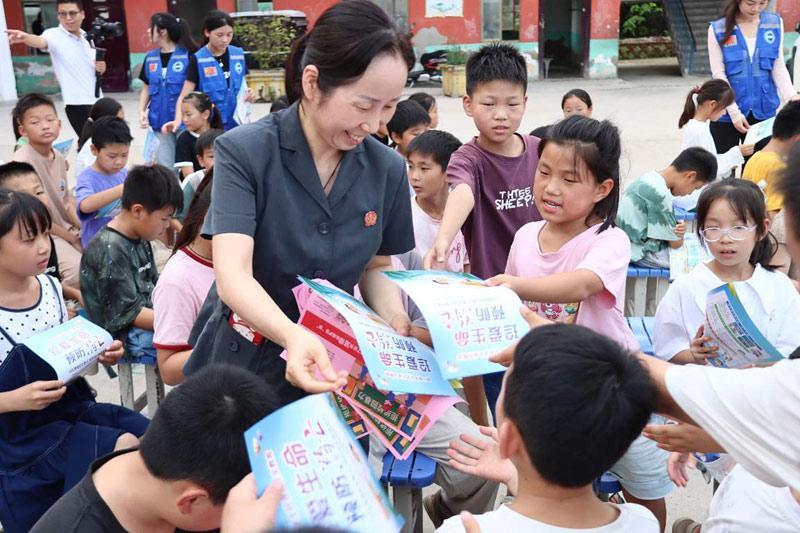 8月7日,睢县人民法院、县妇联和蓝天综合应急救援队前往大学生支教的阮楼小学,开展2024年“少年儿童心向党,真情相伴护成长”暑期儿童关爱服务活动,向孩子们演示了溺水急救法及海姆立克急救法。 本报融媒体记者 梁晓晨 通讯员 付力源 摄