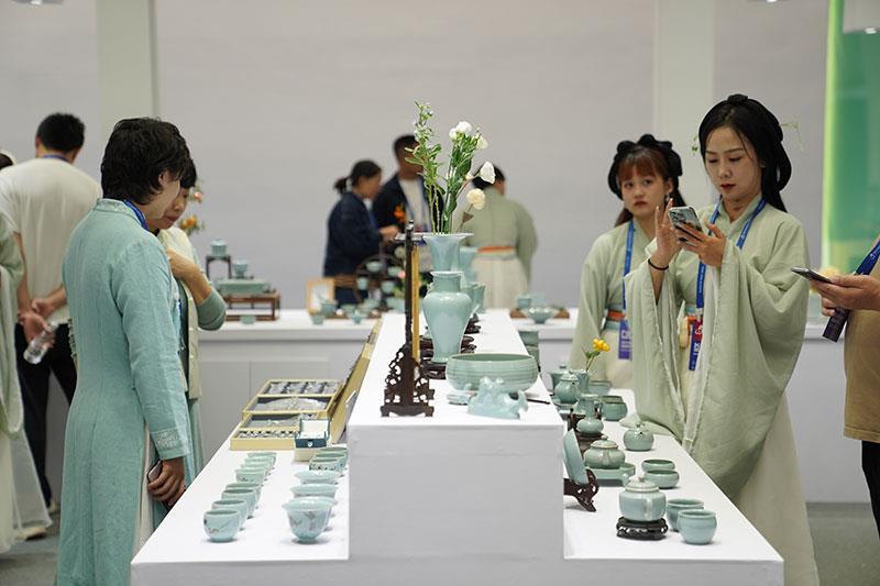 △2023年10月18日,人们在2023中国景德镇国际陶瓷博览会汝窑展台参观。
