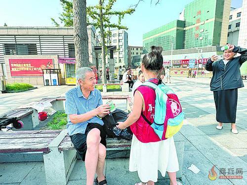 “叔叔,天气太热了,请您喝杯绿豆汤解解暑吧!”昨日上午,在火车站南广场、京港绿地东门、神火大道与府前路交叉口东北角三个站点,响起了一声声童稚的声音。他们是来自梁园区胜利路小学、市第二中学、凯旋路第二小学等十余所学校的70余名小记者,参与的是由京九晚报小记者部联合商丘视光眼科医院举办的第七届“清凉一夏 爱心绿豆汤”公益活动。