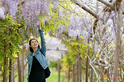 游客在李口镇两河湾湾紫藤园赏花游玩。 本报融媒体记者 邵群峰 摄
