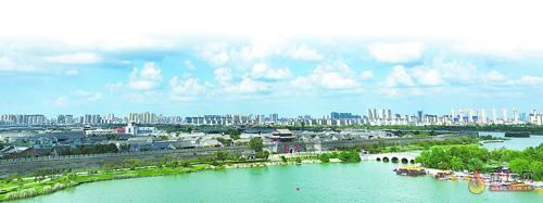 “前些年,谁能想到古城周边的环境能变恁好?以前哪能像现在坐在湖边纳凉看景?味大,坐不住!”正在东城门外万寿桥连廊下与人闲聊的王振国老人感慨,“你看,城外除了城湖就是绿化,风景跟画一样。”