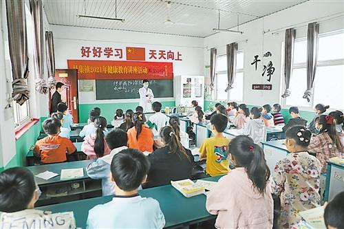 图④:医院组织医护人员深入校园开展健康知识讲座。