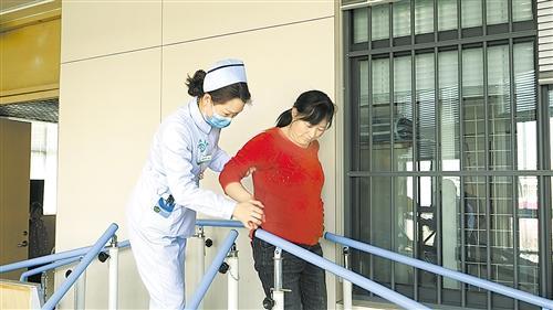 图③:护士帮助患者做康复训练。