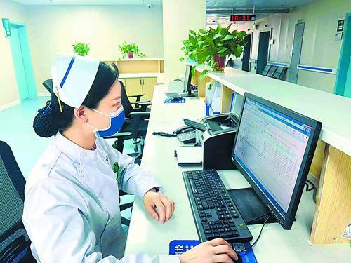图③:护士仔细审阅着患者的病历。