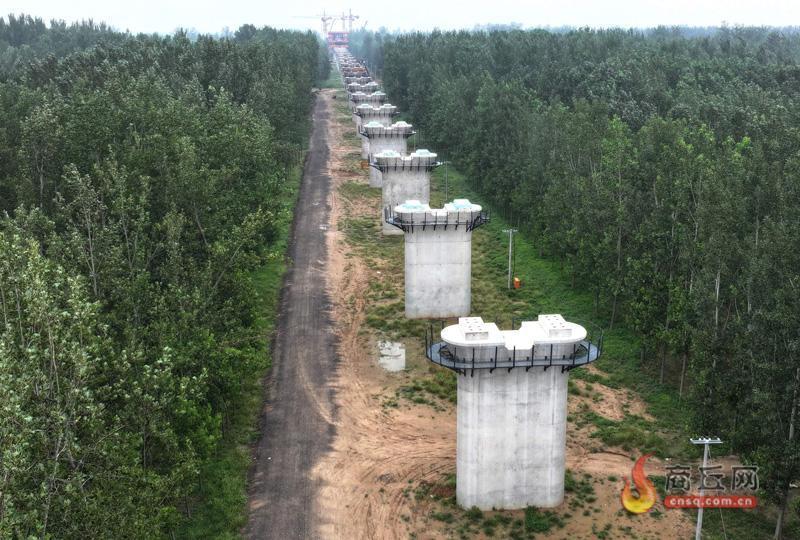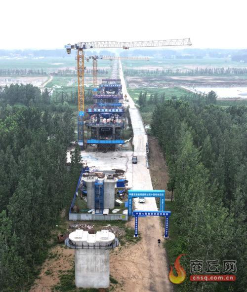 8月28日,记者在商丘市梁园区与山东省曹县交界处的雄商高铁施工现场看到,工人正在紧张施工,一片繁忙景象。交界处两侧的墩柱均已完成底部施工,衔接工程正在有序推进。