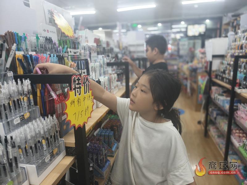 8月29日,一名小学生在文具店选购学习用品。临近开学,文具店迎来销售热潮,许多家长带着孩子前来选购文具,为新学期作准备。