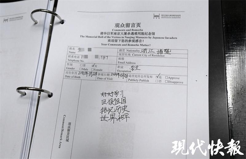 “好好学习,回报祖国”“吾辈当自强”“振兴中华,责任在我们这一代”……暑假进入尾声,侵华日军南京大屠杀遇难同胞纪念馆观众队伍里,孩子们的身影依旧不少。在纪念馆留言簿上,他们用稚嫩的笔迹留下一句句和平心声。