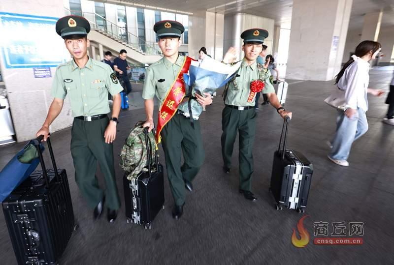 去时锣鼓喧天,归时夹道相迎。9月3日上午,在商丘高铁站,2024年秋季退伍士兵抵达商丘,受到家乡人民热烈欢迎,他们身戴大红花,第一时间感受到了家乡的温暖。