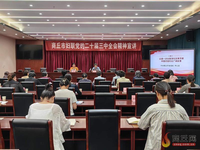 8月29日,市妇联邀请省青年理论宣讲骨干、省基层优秀宣讲员、市委宣讲团成员、市委党校市情研究中心副主任、副教授邓义昌,为市妇联常委、县(市、区)妇联主席、市直部分单位妇委会主任和市妇联机关全体同志宣讲党的二十届三中全会精神,进一步提升政治理论素质,坚定理想信念,为奋力谱写中国式现代化建设商丘实践贡献巾帼力量。