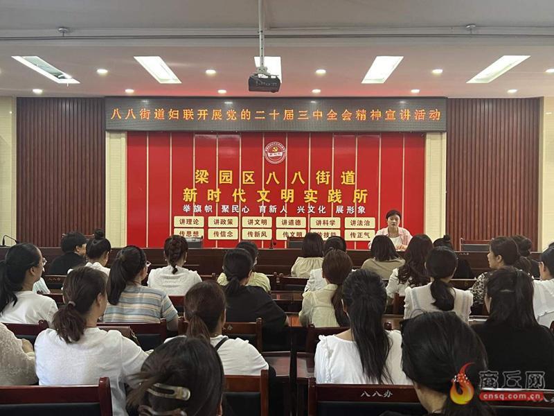 梁园区八八街道妇联开展党的二十届三中全会精神宣讲活动。