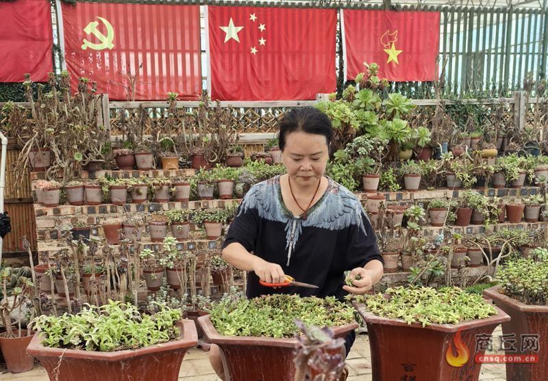 邱艳丽在修剪多肉植物。记者 宋云层 摄