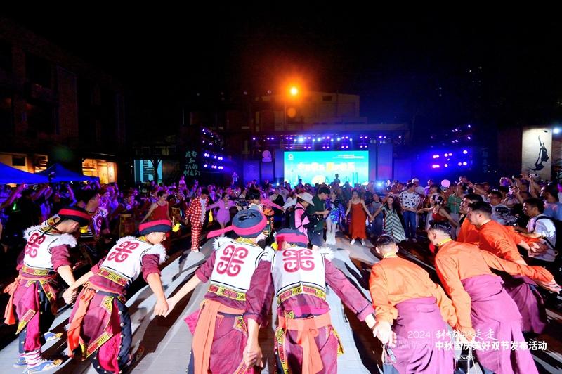 藏族、羌族、彝族的小伙姑娘身着民族盛装,载歌载舞,与潮流乐队演出和说唱表演一起燃动全场,“CITY快闪”、科技感满满的AI演绎和文创市集展现着多姿多彩的文旅魅力,引来围观市民游客热烈的掌声和欢呼声。