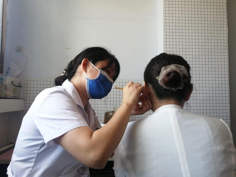 近日,在市中医院耳鼻喉科诊室,医生使用耳穴压豆疗法为患者治疗。耳穴压豆是一种传统的中医疗法,医生使用探棒在患者耳部寻找与疾病相关的穴位,用带有王不留行籽的耳穴贴准确地贴在选定的穴位上,并按压刺激,促进局部血液循环,增强机体免疫力,治疗和缓解耳鸣、耳聋、中耳炎、咽炎、鼻窦炎等疾病症状。 本报融媒体记者 张博 摄