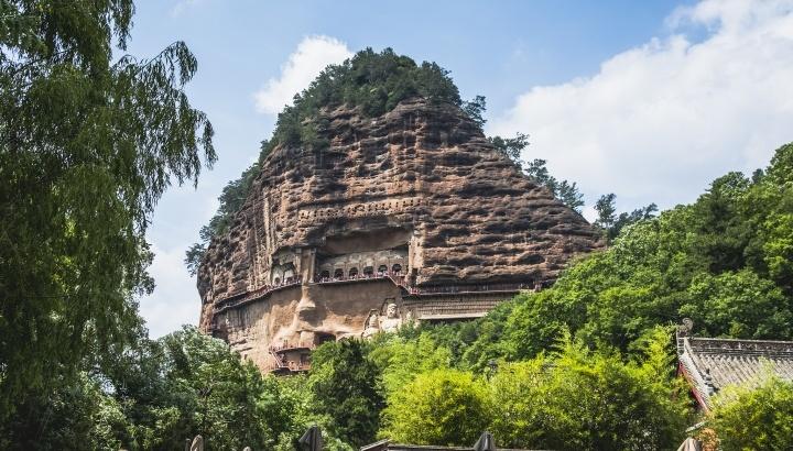甘肃天水,麦积山石窟迎来众多游客
