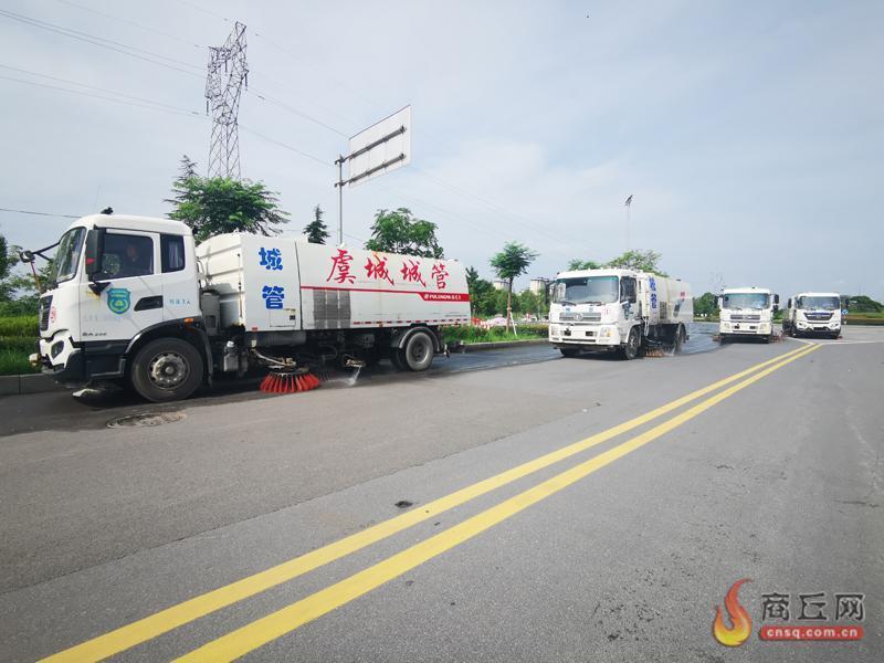 9月23日,虞城县环境卫生事务中心工作人员在工业大道、木兰大道等路段上开展“四车联动”作业模式,对道路进行深度保洁。近段时间以来,其根据县城道路人流量、车流量及分布情况,采取不同的作业模式,对主次干道进行清洗、清扫,洒水、降尘,使县城环境更干净整洁。 贾 震 摄