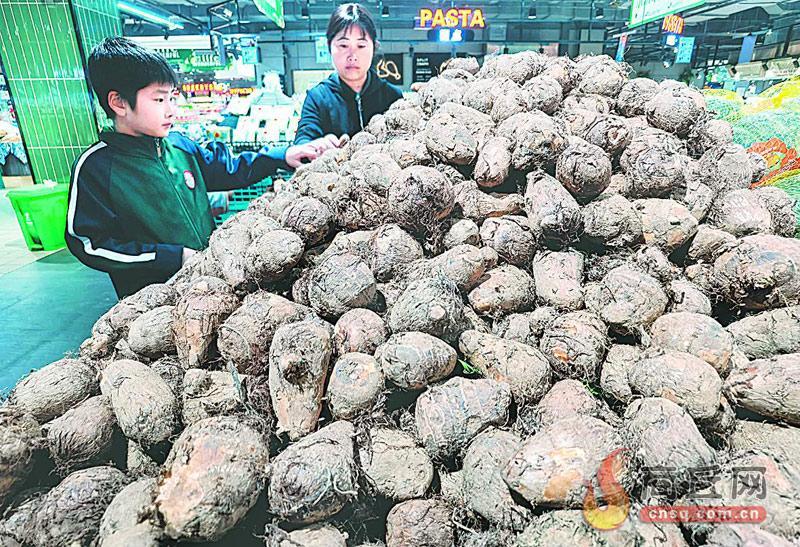 9月24日,在归德路旁一家超市内,市民正在选购芋头,目前芋头每公斤7.2元左右。芋头口感细软,绵甜香糯,具有丰富的营养价值。