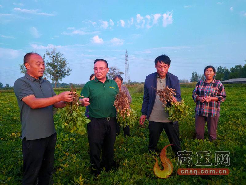 9月23日,农技人员正在宁陵县柳河镇大朱庄村查看花生长势。入秋以来,针对今年雨水较多的情况,宁陵县及时组织农技人员深入基层指导群众对秋季作物开展科学管理,并引导群众根据作物成熟情况适时开展秋收。