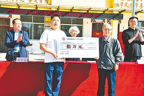 活动现场,张宏喜向虎寺小学捐赠10万元,勉励家乡学子努力学习、自强不息,用知识改变命运,成为报效国家、服务社会的有用之才。