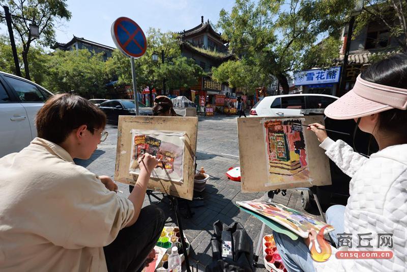 昨日上午,在商丘古城,来自信阳的学生正在写生。据悉,他们慕名来到商丘古城,将停留一周左右,用多彩画笔描绘古城风采。
