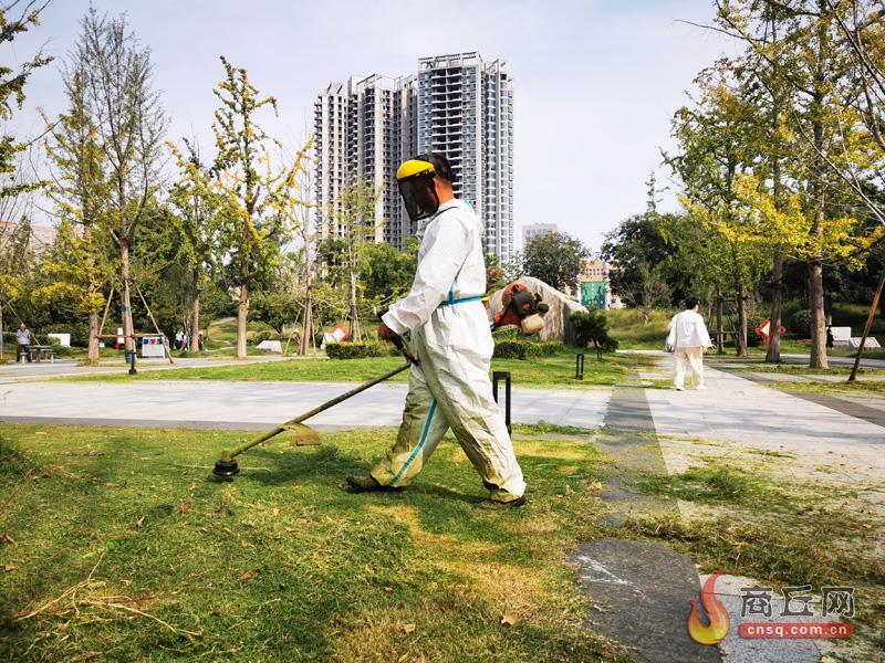 ▶9月26日,睢阳区园林绿化局集中开展区管公园苗木除杂及草坪修剪行动,扎实做好公园绿化苗木养护管理,努力为广大市民游客畅享国庆假期提供开放共享、整洁美观的游园环境。