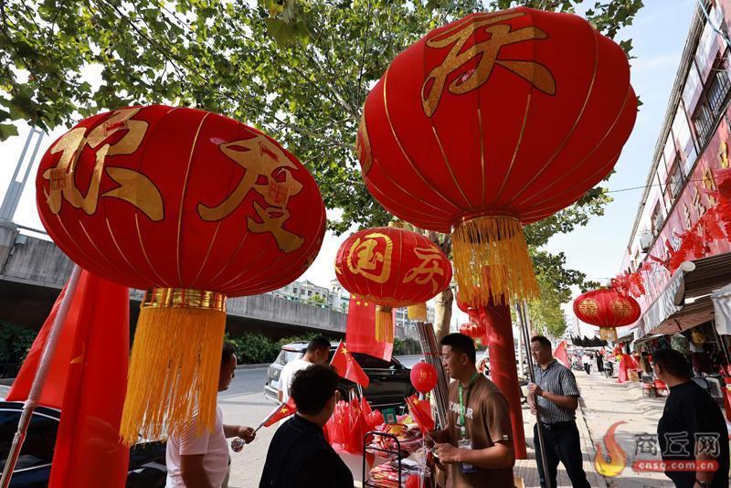 9月29日,在市区一家批发市场,市民正在选购国旗和带有“欢度国庆”字样的灯笼。记者 魏文慧 摄