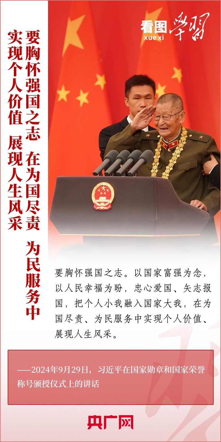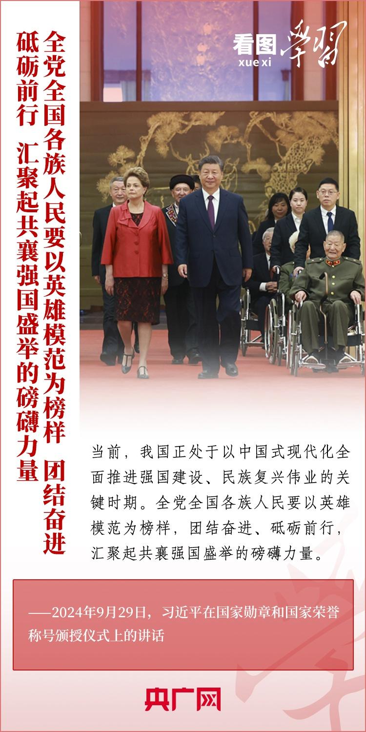 9月29日,中华人民共和国国家勋章和国家荣誉称号颁授仪式在北京举行,习近平总书记向国家勋章和国家荣誉称号获得者颁授勋章奖章并发表重要讲话。总书记强调,全党全国各族人民要以英雄模范为榜样,团结奋进、砥砺前行,汇聚起共襄强国盛举的磅礴力量。一起来学习!