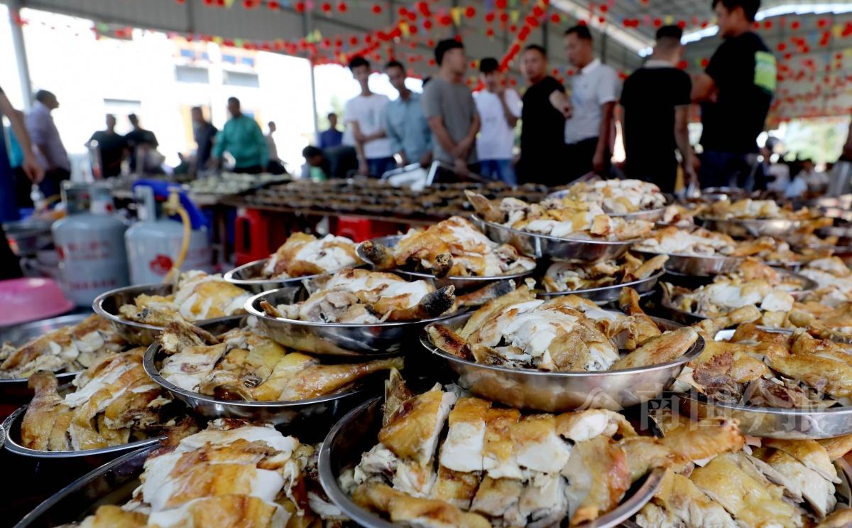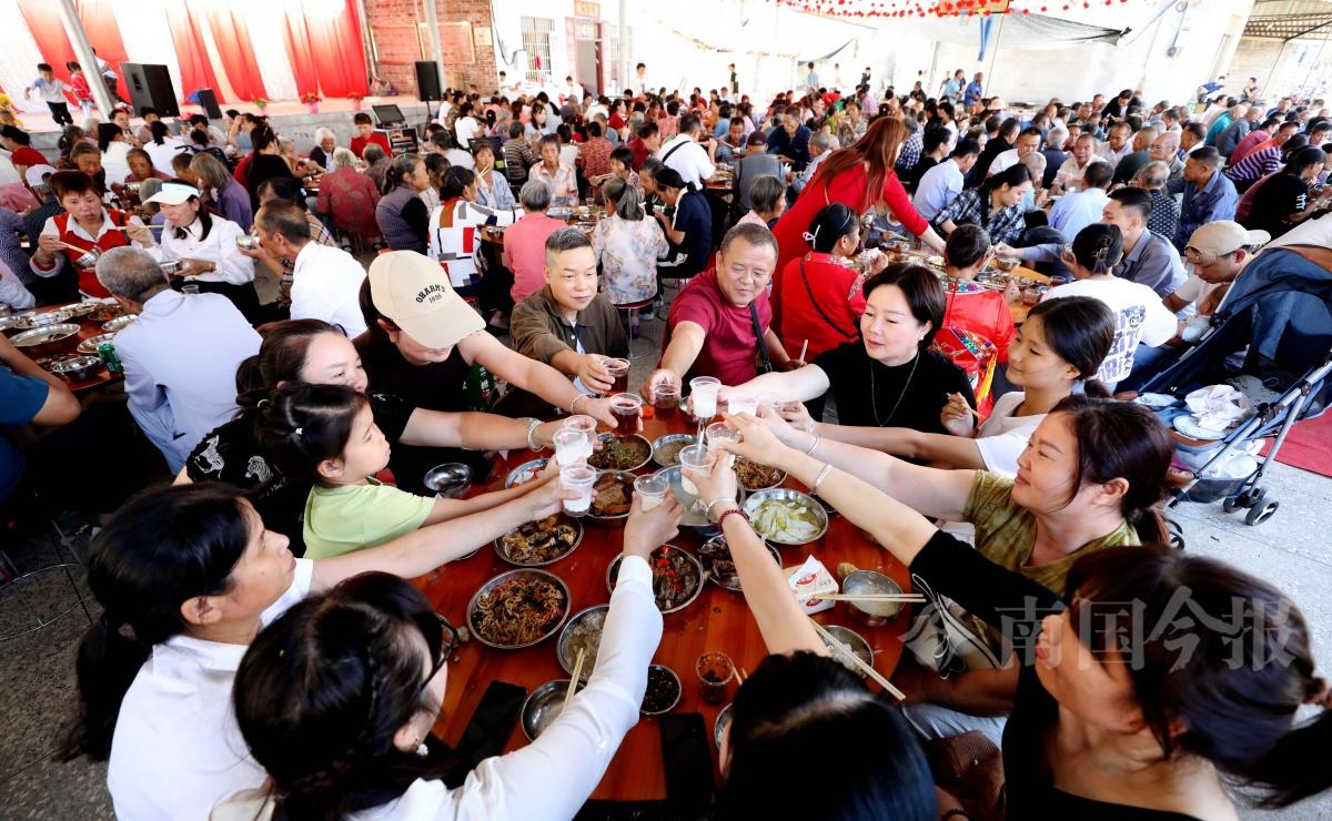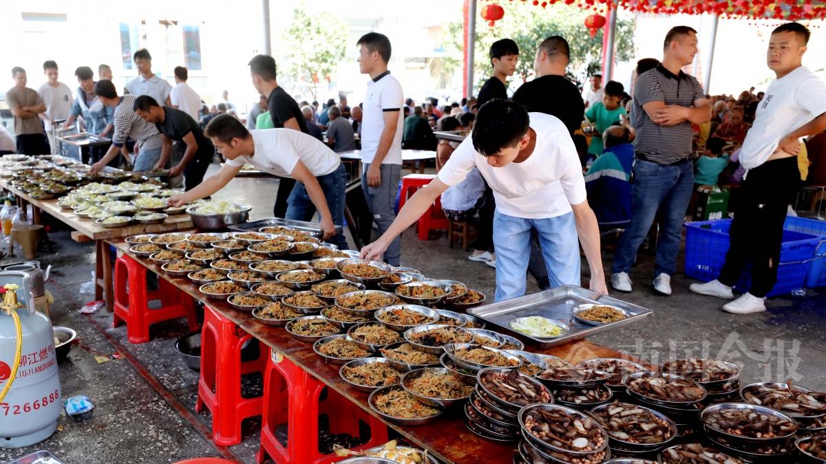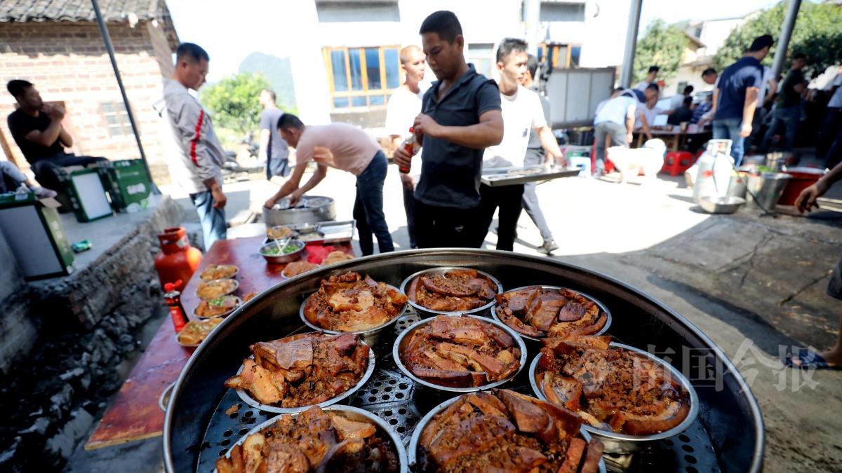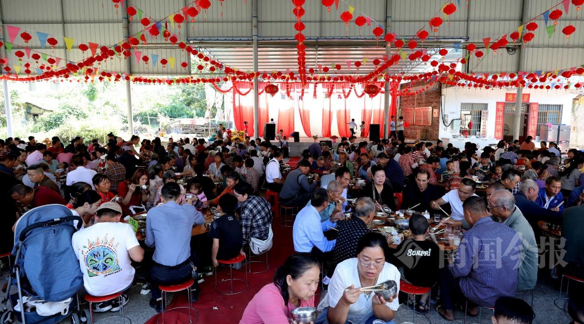 10月5日,距离重阳节尚有些时日,但这个村屯却已热闹起来。当天,柳州市柳江区成团镇甘塘村委屯冲村举行一年一度的敬老节活动。年轻人为老人们送上大礼包,同时宰猪宰牛,设百家宴,一起敬老爱老,其乐融融。