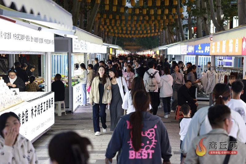 10月7日,记者在商丘日月湖、商丘古城和向阳路步行街拍摄的城市夜色。华灯初上,琳琅满目的商品、香气扑鼻的美食、新鲜有趣的表演……随着各式各样的摊位有序开张,升腾起“夜经济”的浓浓烟火气,撬动了秋日消费的新潜能。
