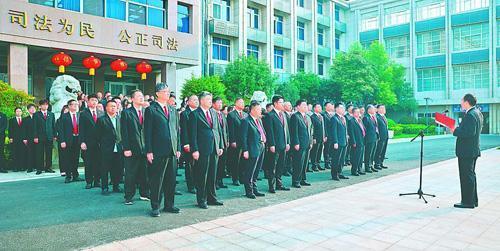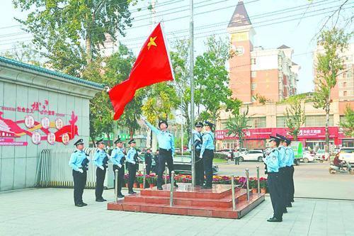 10月8日上午8时,睢阳区人民法院举行升国旗仪式,进一步激发爱国热情、强化干警纪律作风建设。刘 军 摄