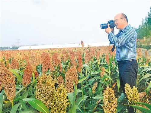 10月14日,在夏邑县桑堌乡万亩高粱基地,即将被收割的高粱随风摇荡,火红的高粱穗映红了大地,一派丰收的景象。夏邑县摄影家协会会员正在这里创作。