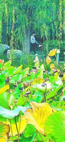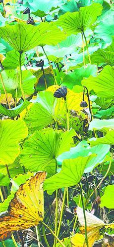 去也绿变黄,莲蓬垂首,晚荷匿迹,满塘谦虚低调,憋着劲长藕。