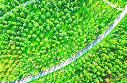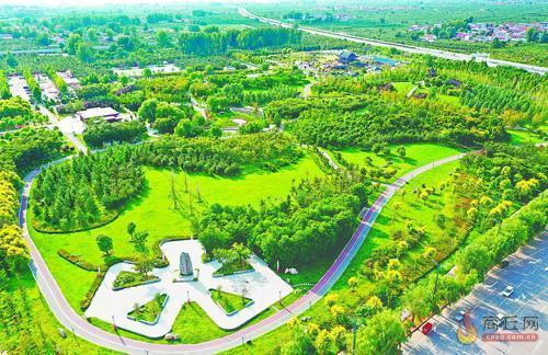 10月19日,航拍镜头下的宁陵县迎宾公园北园依旧郁郁葱葱。近年来,宁陵县委、县政府大力践行新发展理念,推进公园城市建设,一座座大中型公园、口袋公园、微绿地、小游园不断建成,成为梨乡人民健身休闲的好去处。本报融媒体记者 高会鹏 摄