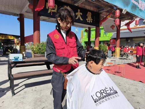 志愿者为环卫工人理发。本报融媒体记者 邵群峰 摄