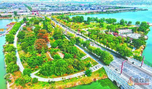 10月26日,商丘古城内外开启变色模式,进入多彩深秋。城湖一池碧水,湖畔红色的枫叶、黄色的银杏、绿色的垂柳交织在一起,点缀着每个角落。本报融媒体记者 魏文慧 摄