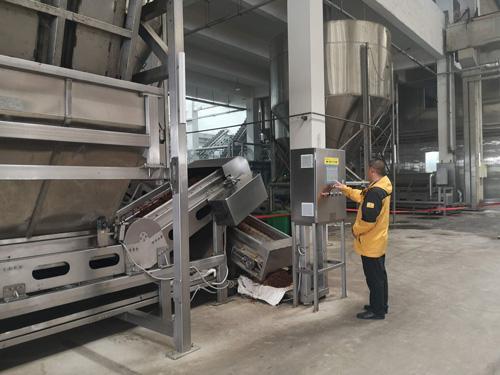 10月25日,工人正在皇沟工业园智能化酿造车间操作机器。近年来,该企业通过智能化改造升级酿酒技艺,将传统酿酒工艺与现代智能技术的完美融合,形成了皇沟御酒馥合香独特的香气和口感,深受市场欢迎。本报融媒体记者 袁国豪 摄