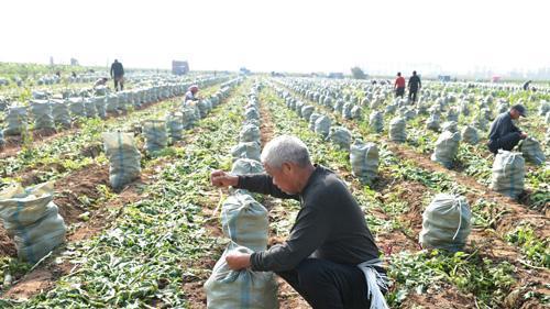 11月11日,柘城县安平镇花庄村种植的460亩水果萝卜开始收获。这些水果萝卜大多销售到山东、安徽、江苏、上海、北京等地,年产值320万元左右。张 超 摄