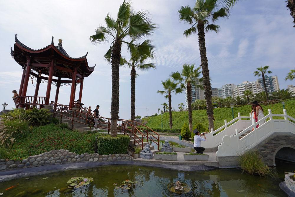 2024年11月9日,人们在秘鲁首都利马米拉弗洛雷斯区的中国公园内休闲。