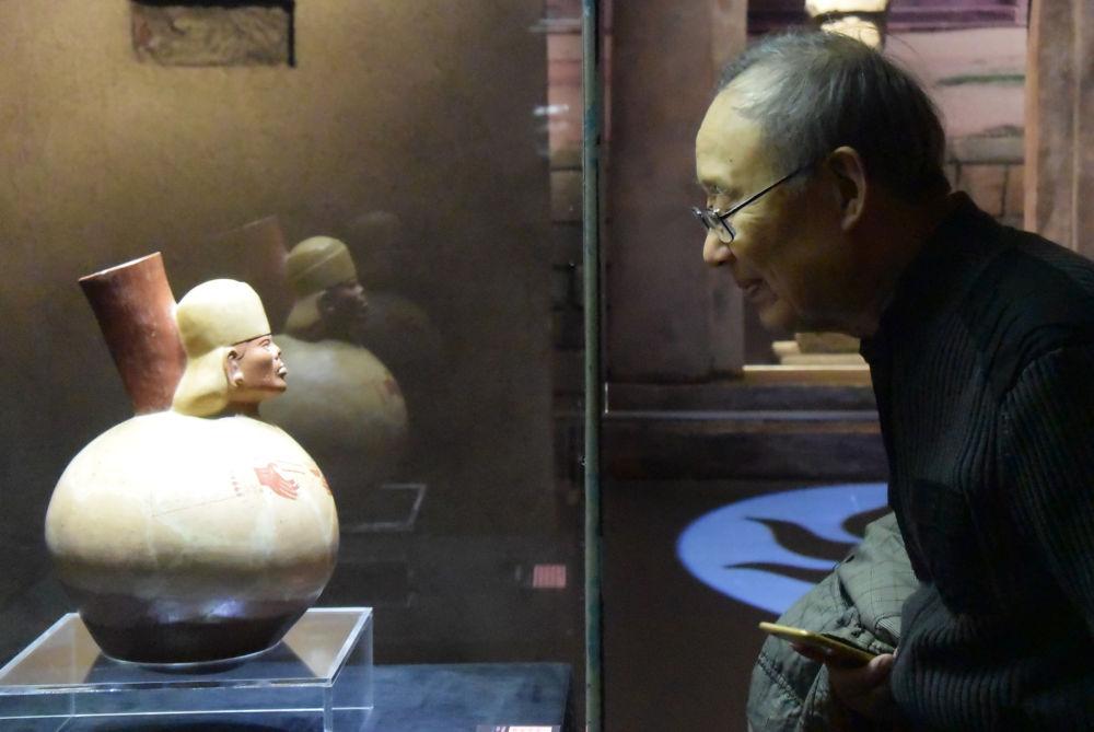 2020年1月17日,“安第斯文明特展——探寻神秘而又令人向往的印加帝国”在天津博物馆开展。这是参观者观看来自秘鲁的展品。)