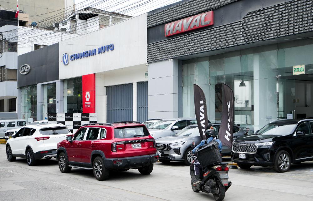 这是在秘鲁利马市区拍摄的几家毗邻的中国品牌汽车销售商门店(2024年11月12日摄)。
