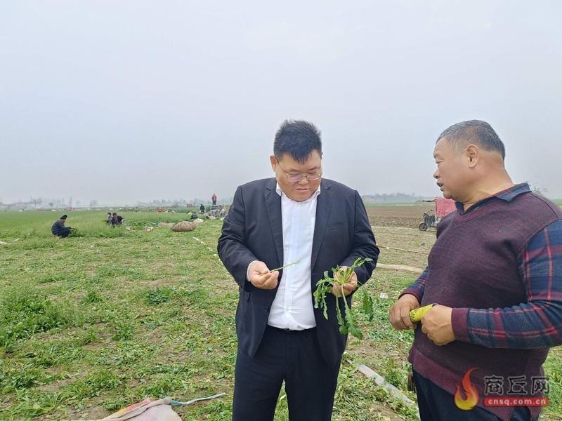 11月13日,中原银行商丘虞城支行零售行长赵翔深入田间地头宣传信贷产品,向荠菜种植户询问收成情况及资金需求。