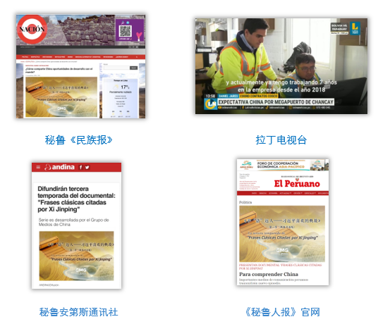 《平“语”近人——习近平喜欢的典故》第三季(西班牙语版)即日起在秘鲁国家广播电视台、秘鲁电视联播网、秘鲁广播节目集团电视端、秘鲁安第斯新闻台、泛美电视台、拉丁电视台、秘鲁《民族报》等多平台落地播出。14日,秘鲁最具影响力的官方报纸《秘鲁人报》及其官网刊发节目在秘鲁落播的消息。秘鲁安第斯通讯社、《共和国报》、秘鲁EXITOSA电台、秘鲁消息网以及拉美新闻联盟官网等拉美主流媒体播发相关报道。