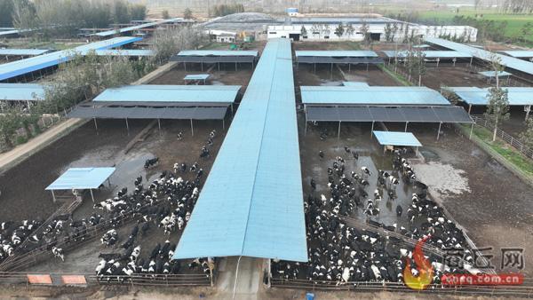 11月20日,航拍的位于虞城县田庙乡的科迪智慧牧场。该牧场总占地面积1132亩,是集奶牛养殖、技术研发、乳品加工销售、饲草种植、饲料生产、有机肥生产、休闲观光旅游于一体的现代化奶牛养殖牧场。目前,牧场一期工程1-6号棚已基本建成,二期全部建成后,高标准牛舍将达到12万平方米,畜位1.2万个。记者 邢 栋 摄
