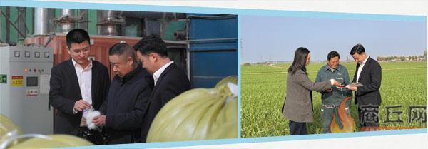 中原银行永城刘河支行负责人张元甲(左一)到某企业生产车间查看经营情况。