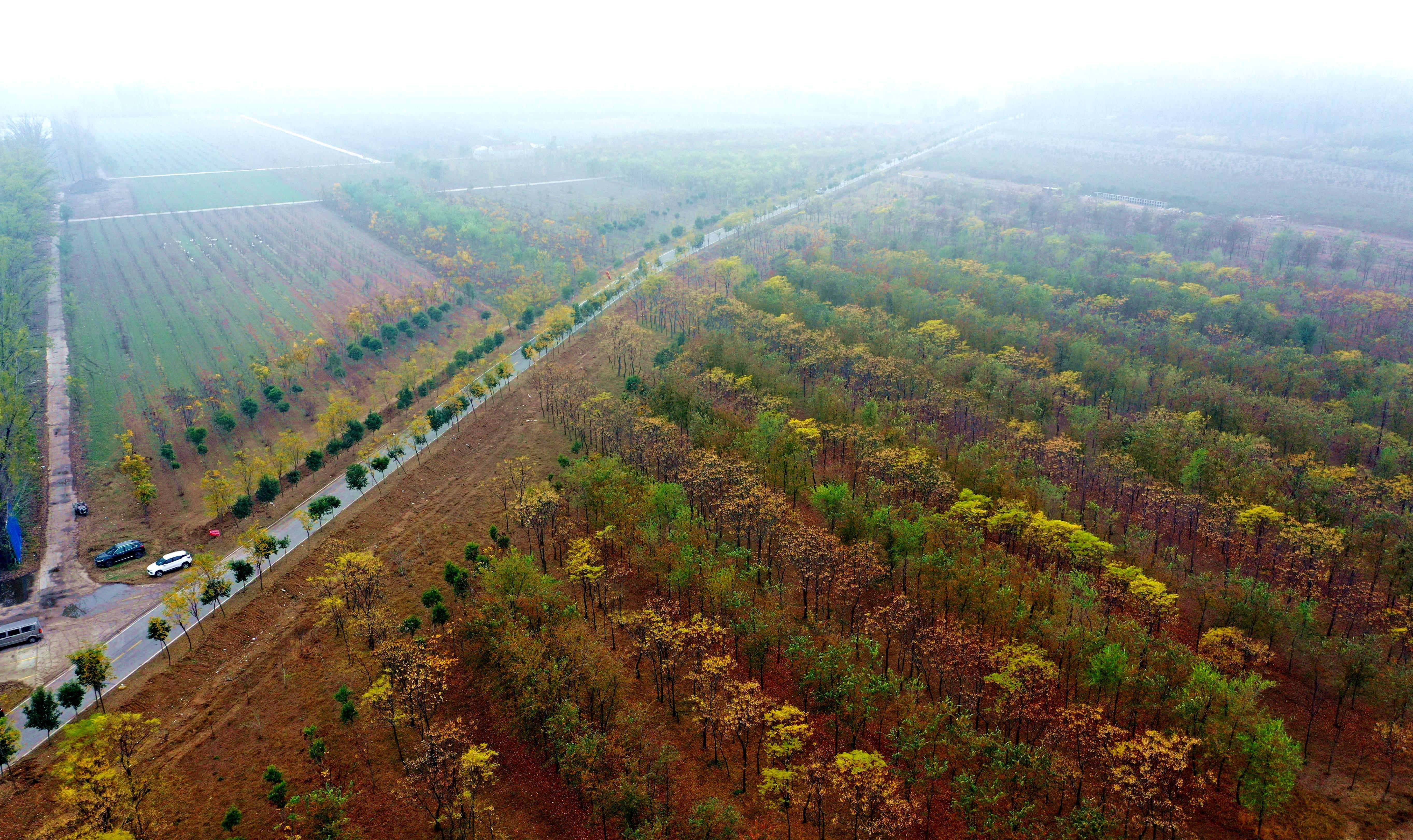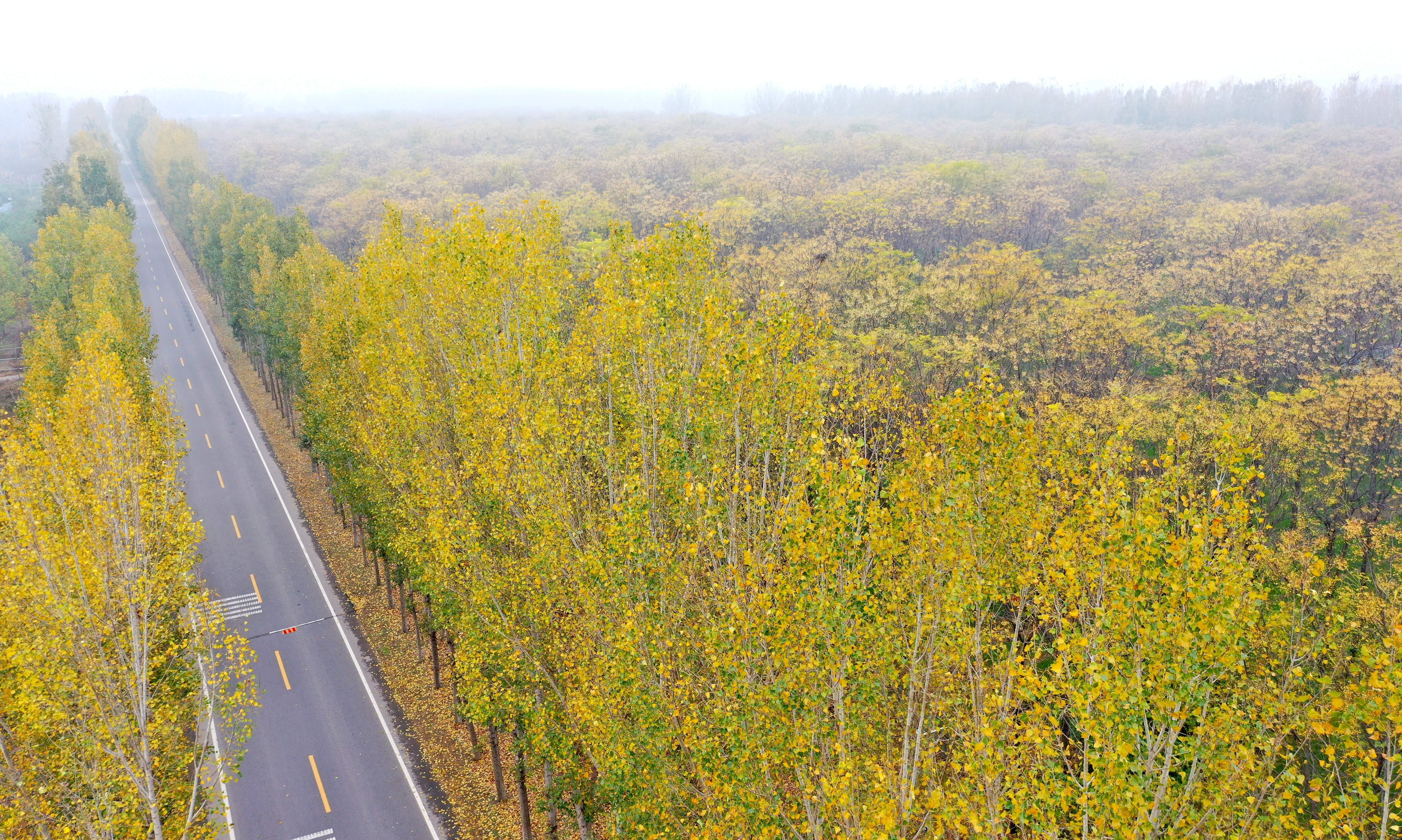 11月25日,航拍镜头下的国有宁陵林场层林尽染,叠翠流金,五彩斑斓的树林令人沉醉。国有宁陵林场始建于1958年,下属5个分场12个护林点,总面积2.135万亩。每逢秋冬时节,国有宁陵林场林海如毯、云雾如纱,满目黄绿惹眼,特别是在空中俯瞰林场,犹如一幅色彩斑斓的油彩画。