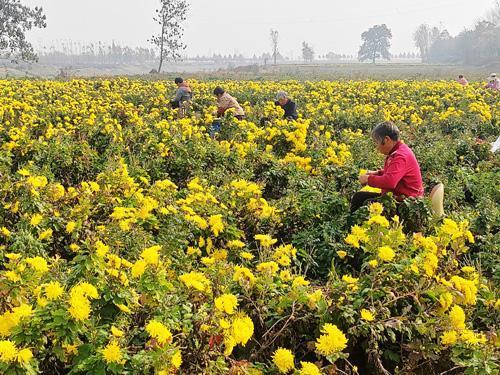 11月24日,睢县白庙乡李口村村民在采摘药菊花。近年来,睢县在确保粮食安全与发展特色产业种植同频共振的基础上,注重产业结构调整,按照“一乡一业”“一村一品”打造特色产业,制定出台特色产业优惠扶持政策,菊花、丹参、白术等中药材种植产业得到发展,目前,全县共种植中药材近2万亩。 本报融媒体记者 黄业波 摄