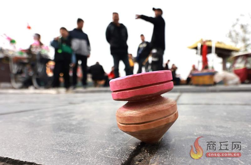 昨日上午,在商丘古城,街头售卖的陀螺,吸引了不少市民的目光。