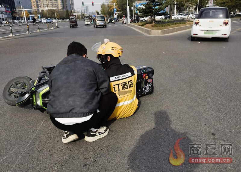 昨日上午,在神火大道与文化路交叉口附近,一辆机动车与骑电动车的外卖小哥发生剐蹭,所幸外卖小哥伤势较轻。十字路口,车辆较多,安全一定要牢记在心。