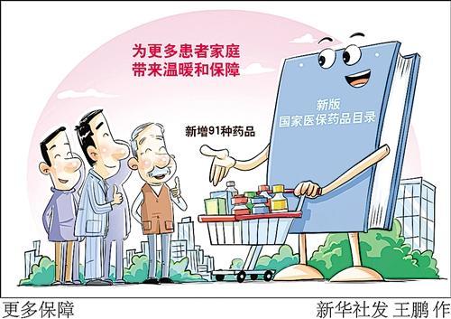 近日发布的新版国家医保药品目录新增91种药品,其中肿瘤用药26种(含4种罕见病),糖尿病等慢性病用药15种(含2种罕见病),罕见病用药13种,抗感染用药7种,中成药11种,精神病用药4种,为更多患者家庭带来温暖和保障。